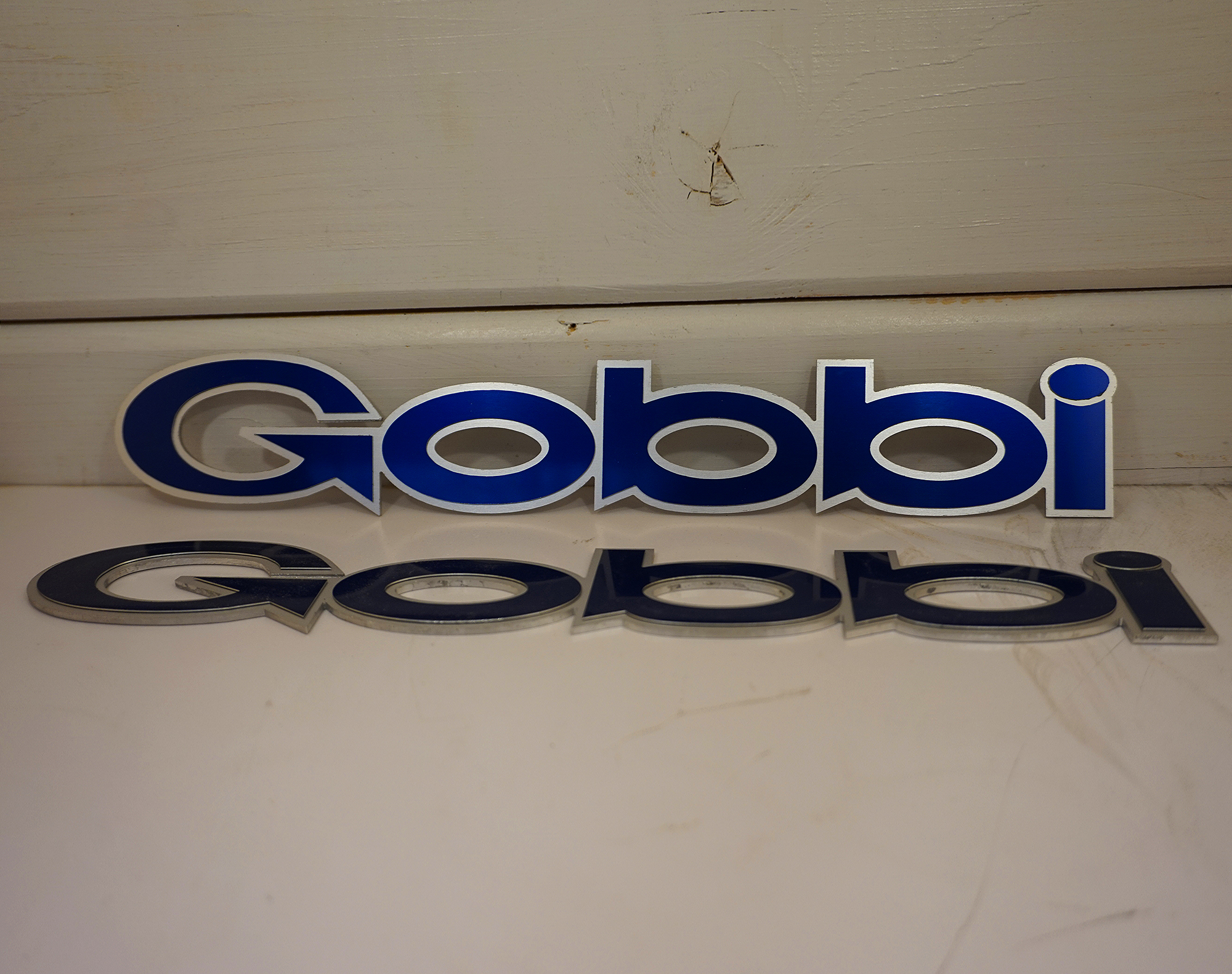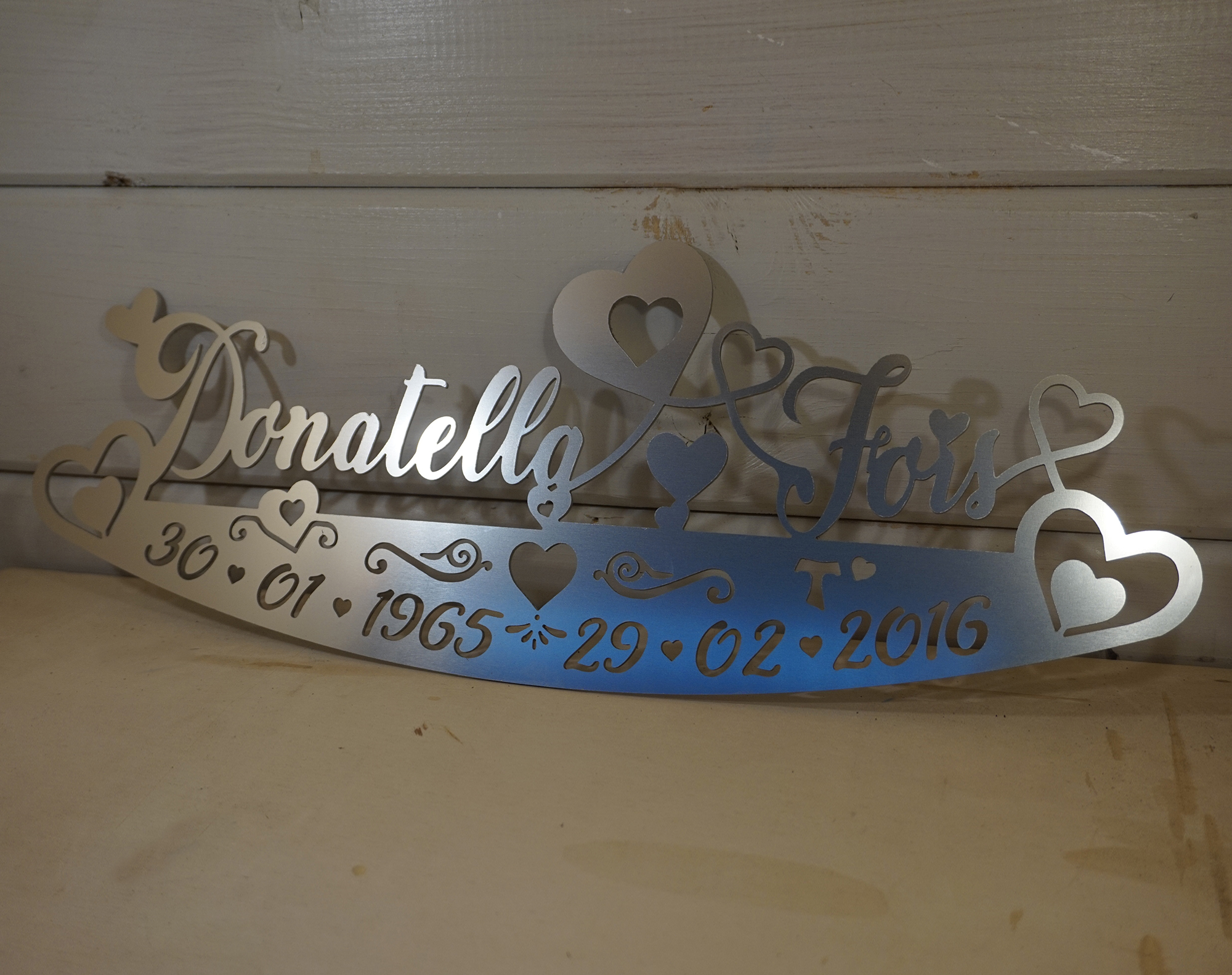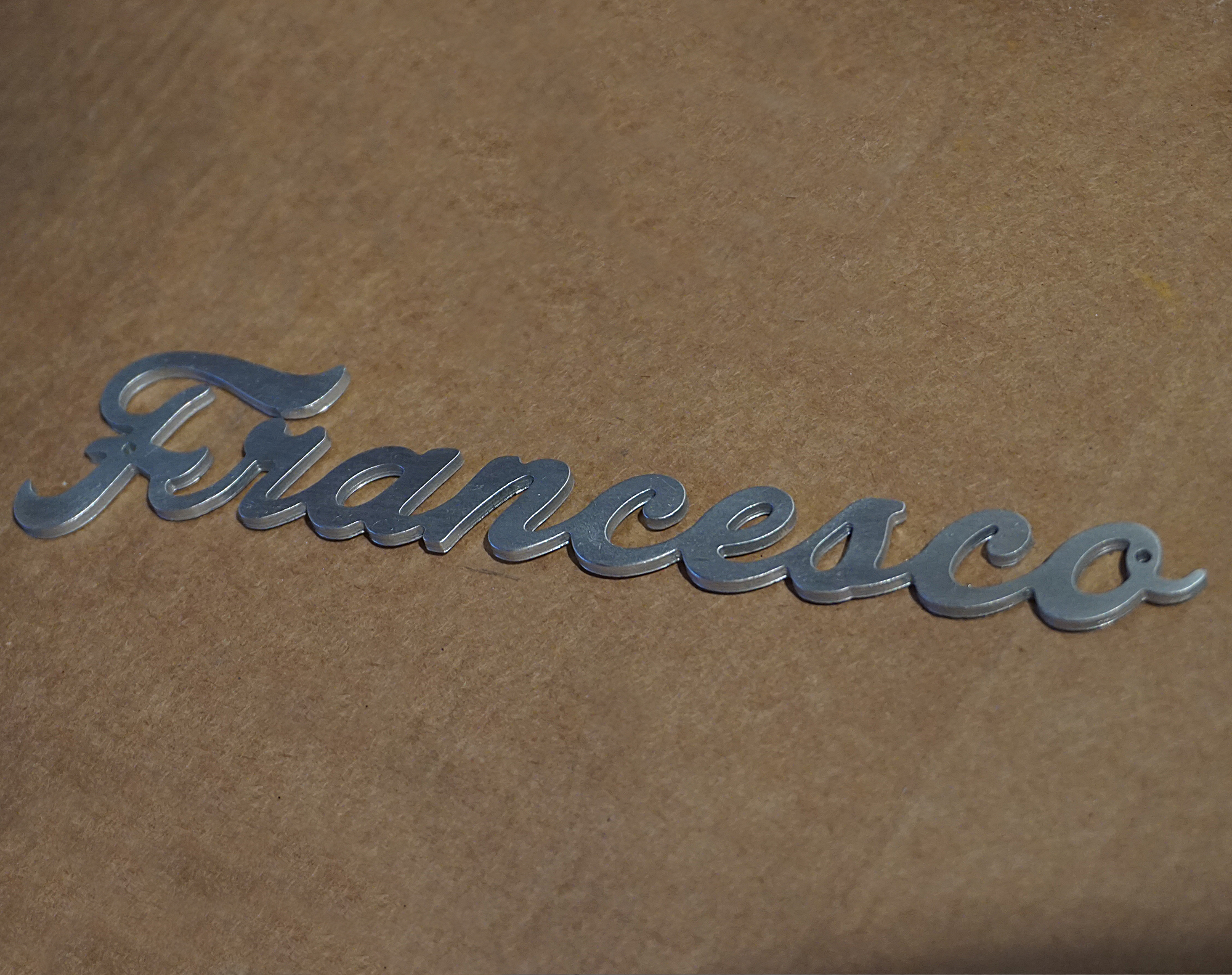 scritta in alluminio piatta personalizzata con biadesivo