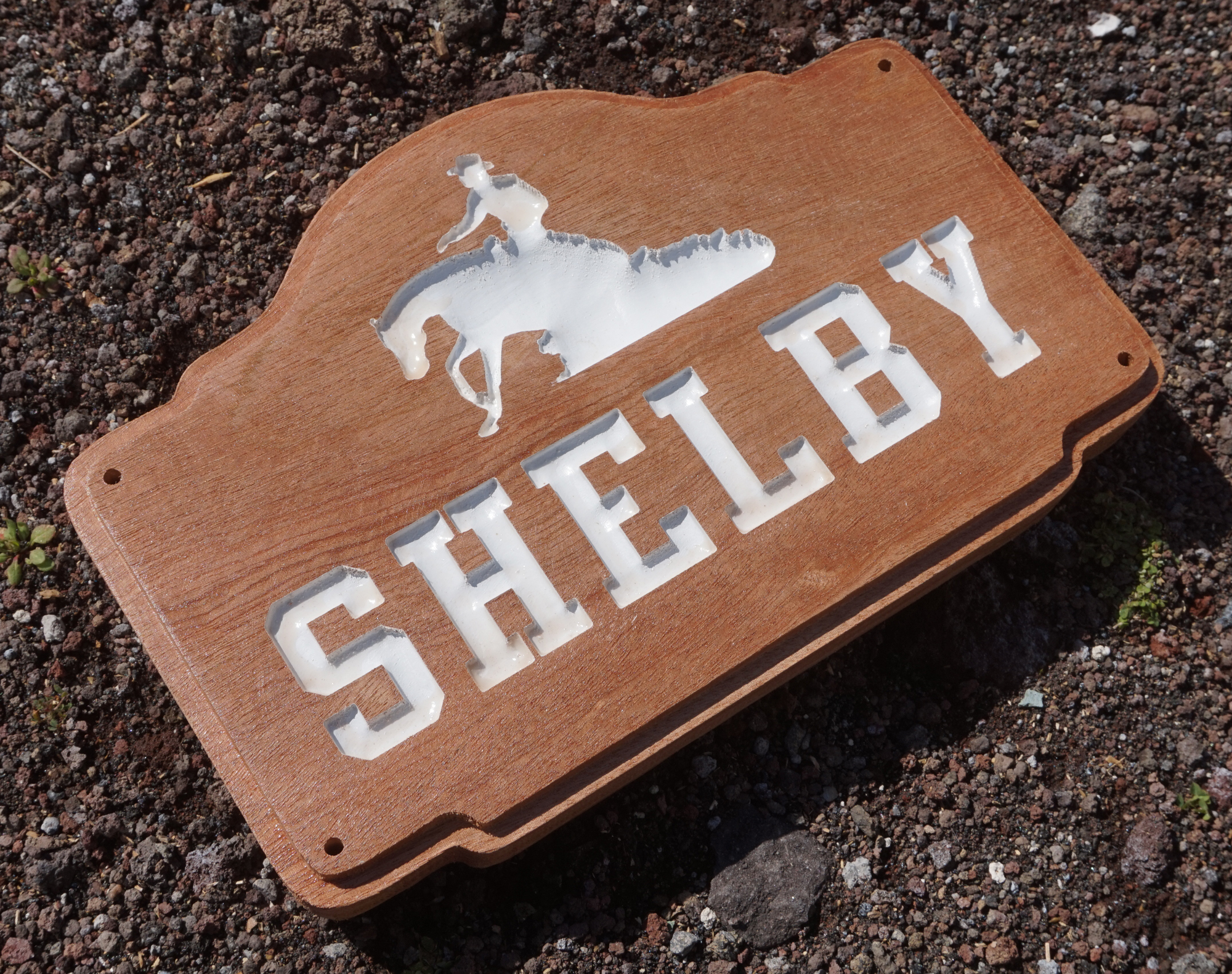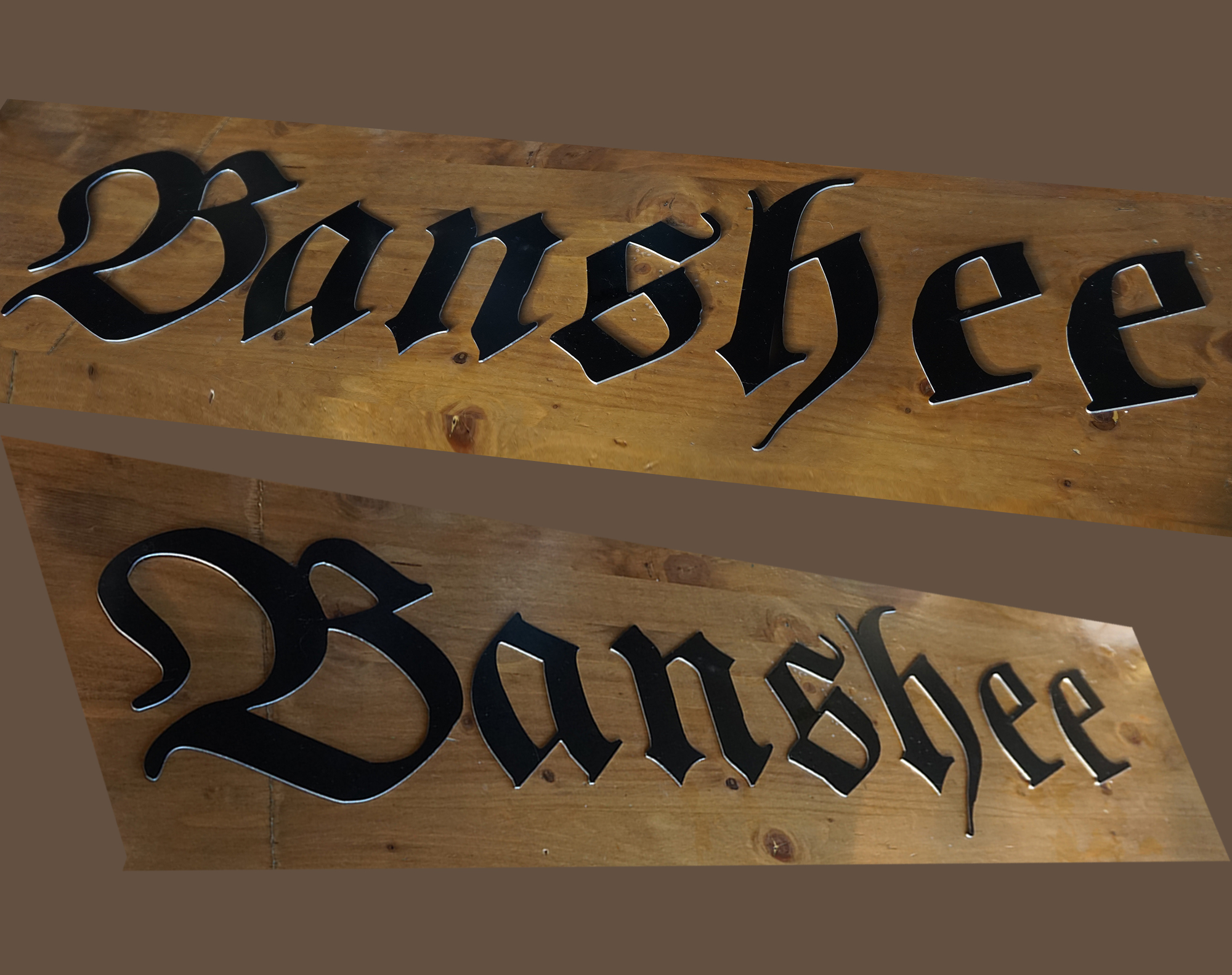 Targa personalizzata in legno di castagno con scavo nero