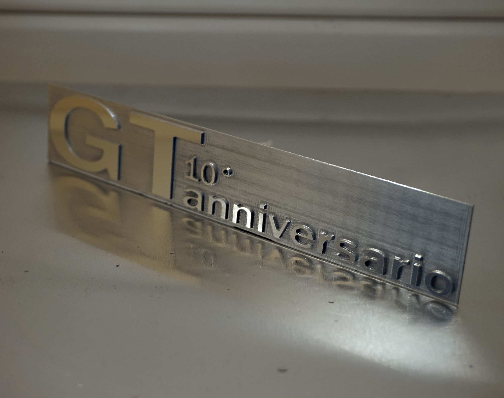 Targhetta in alluminio anodizzato scavata bicolore personalizzata
