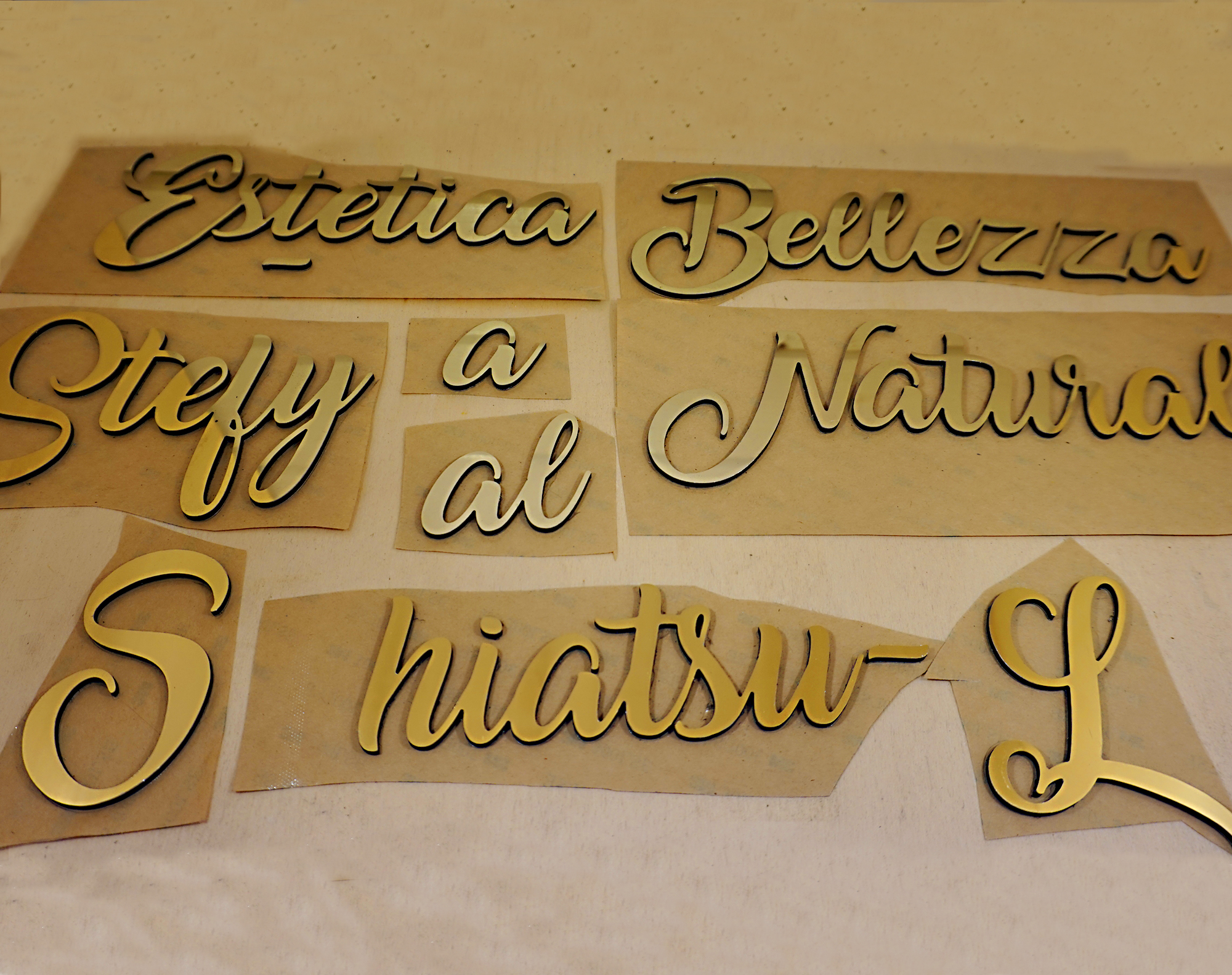 Scritta in alluminio personalizzata su supporto biadesivo