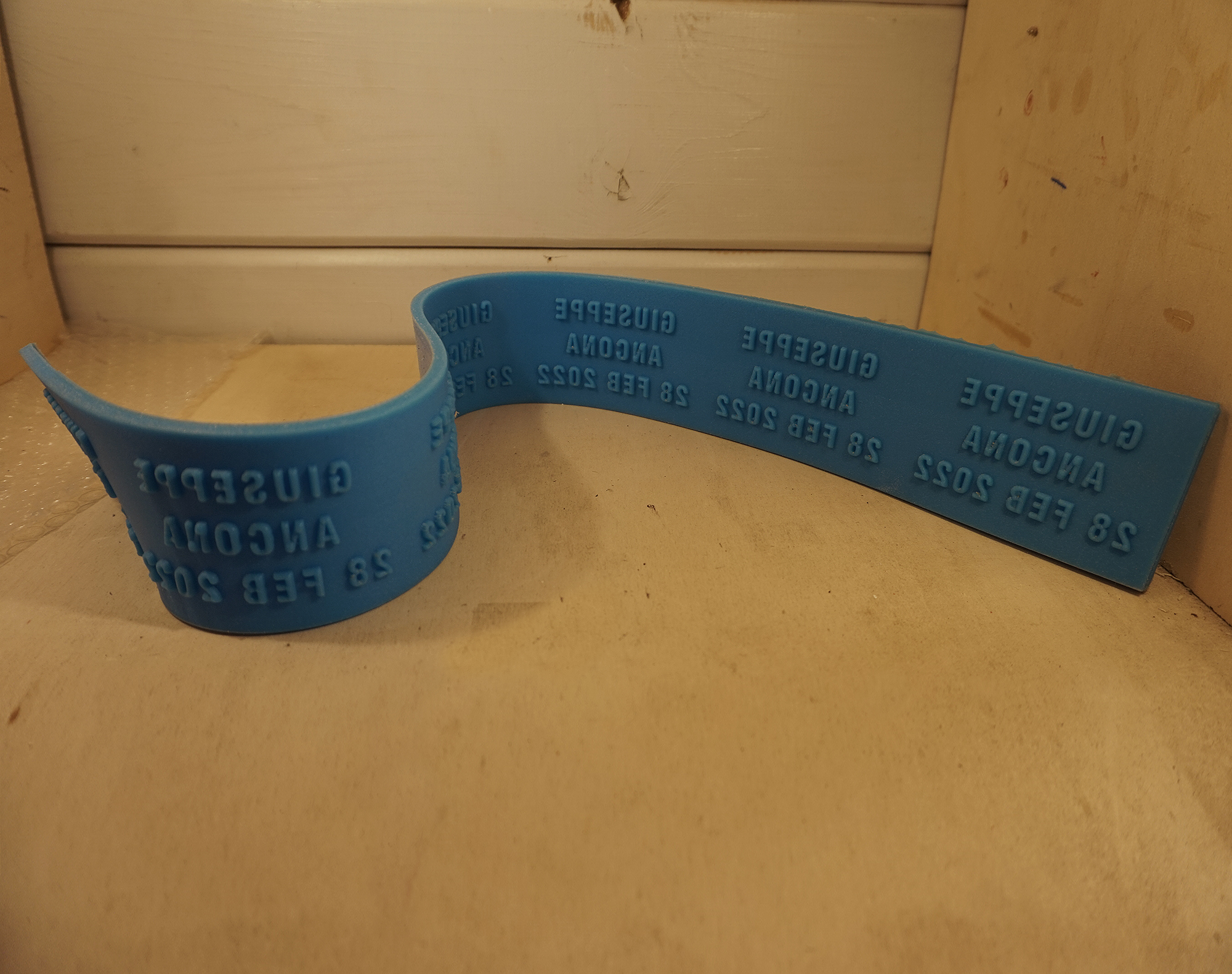 Personalisierte Aluminiumschrift auf doppelseitig klebendem Träger
