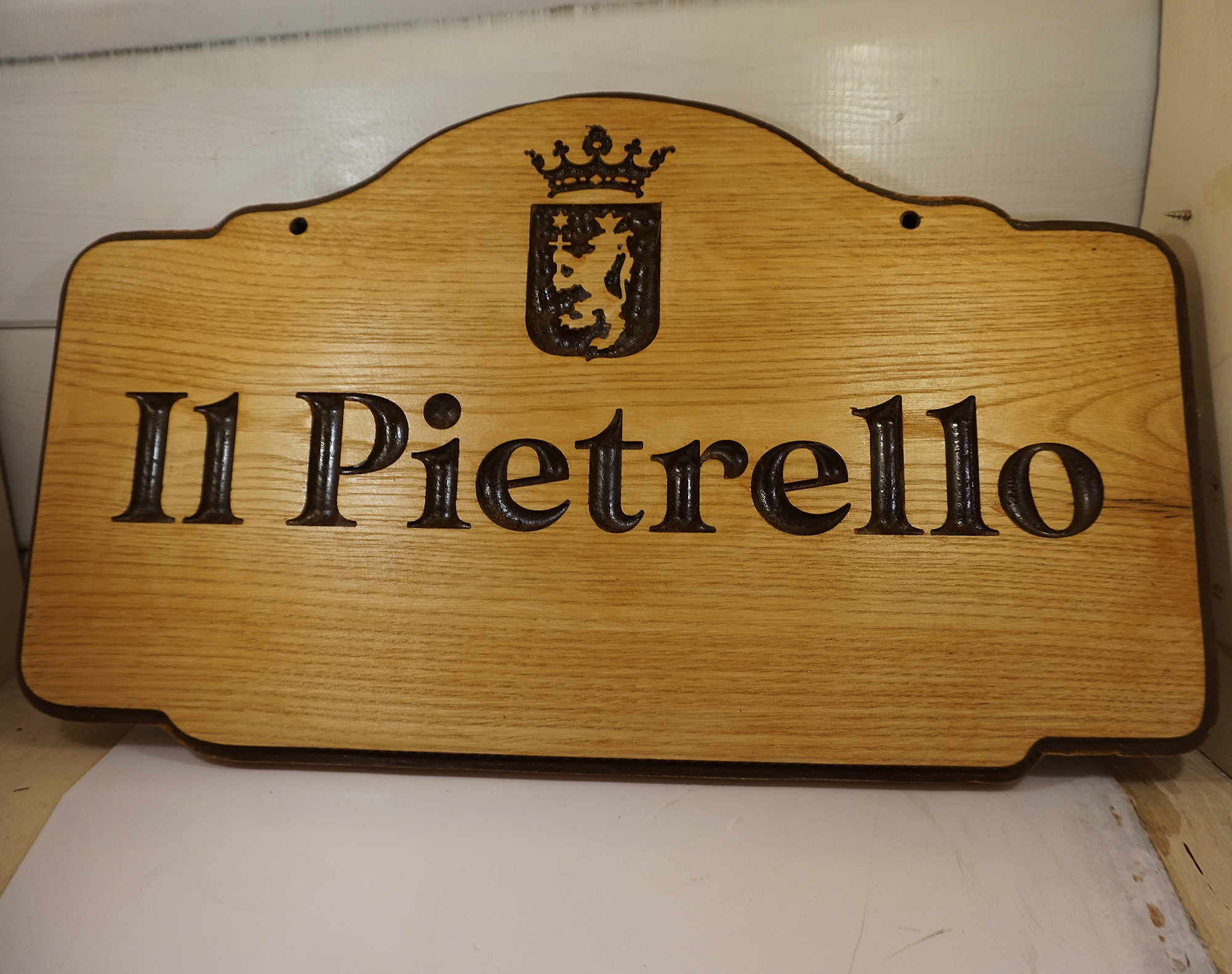 plaque en bois de châtaignier sculptée et imprégnée d'un symbole personnalisé