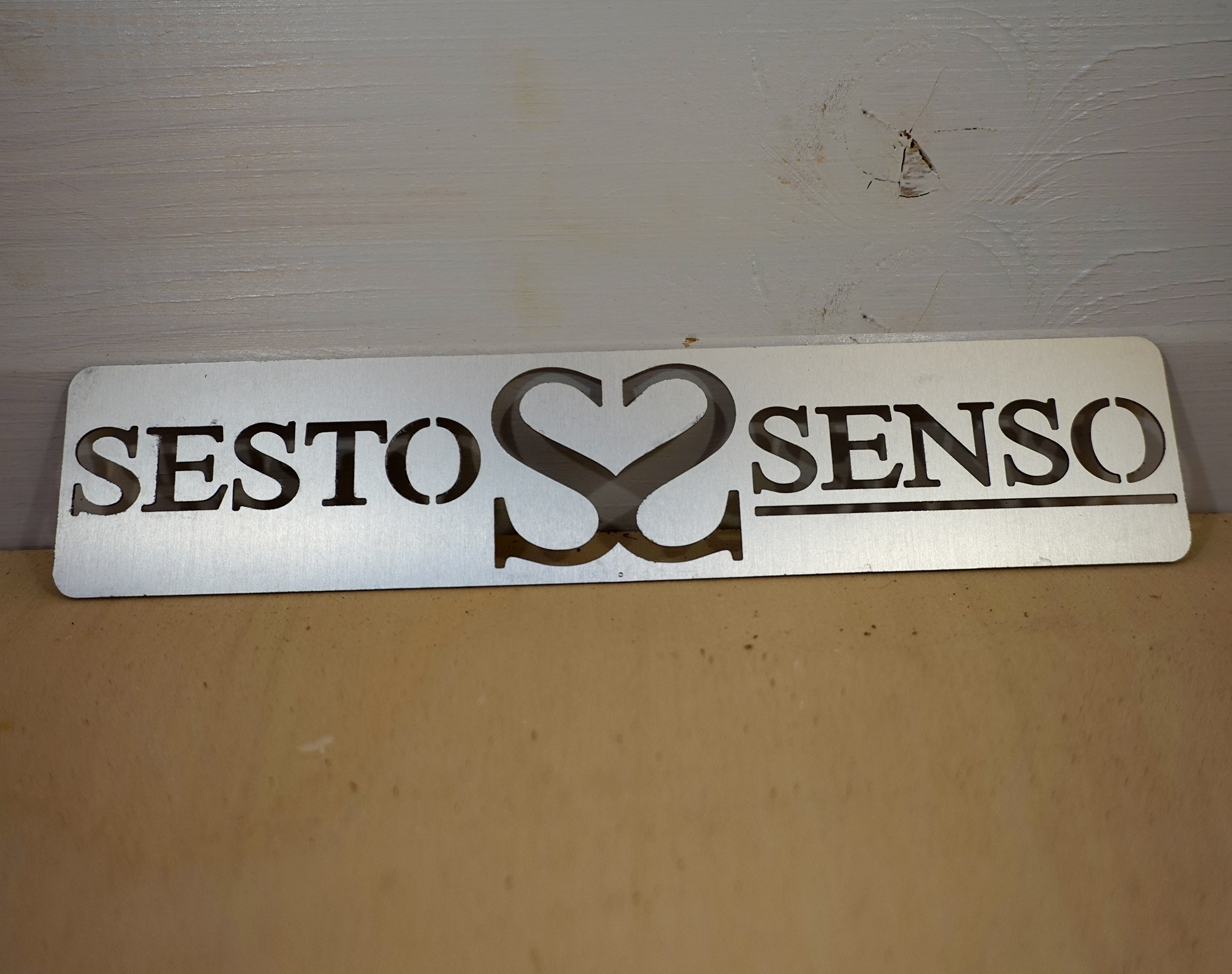 placa de castanho pintada com escrita e símbolo personalizados