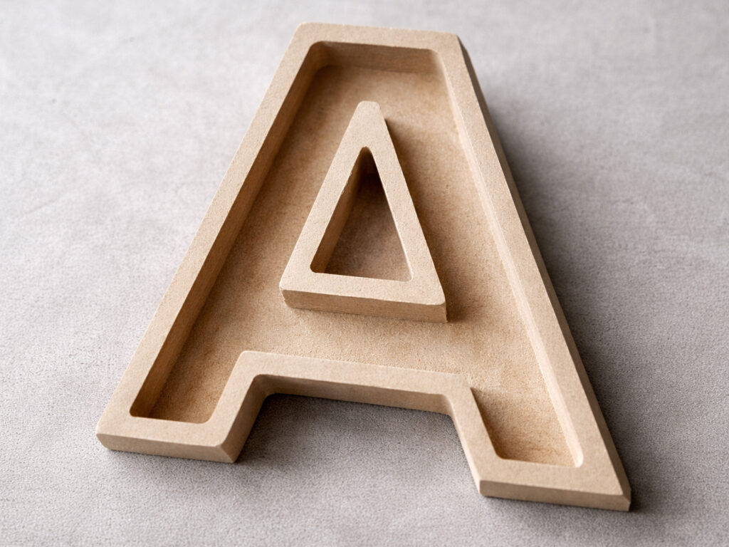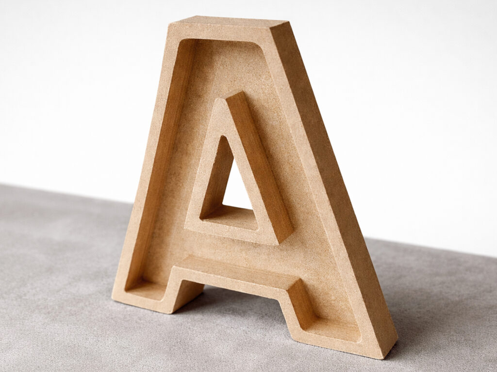 As letras são feitas em MDF de alta qualidadeDisponível em diferentes espessuras para se adaptar a todas as necessidades estéticas e estruturais: MDF da 16mm, MDF de 20mm e MDF de 25mm.